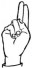 На ћирилици написано ЉУБИЦА ТЕОФИЛОВИЋ састоји се из 16 слова [?]. Исписано ћириличном једноручном азбуком за глувонеме: